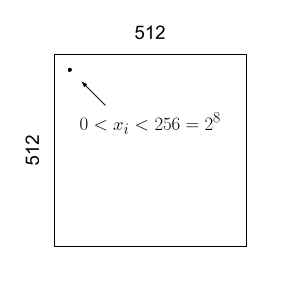 \[ x \in \mathbb{R}^{n} \] where \(n=512^{2}\)Each pixel has a grayscale. That grayscale is typically a value between 0 and 255.