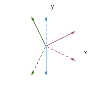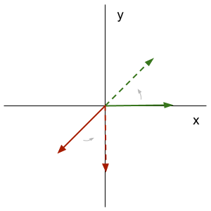 \[ \textbf{R}\left(\frac{\pi}{4}\right)^{2} = \textbf{R}\left(\frac{\pi}{2}\right) \]Example 3: Reflection about the \(x\)-axis