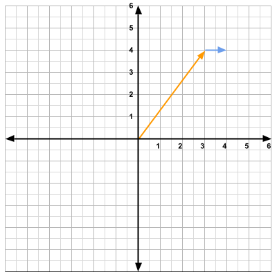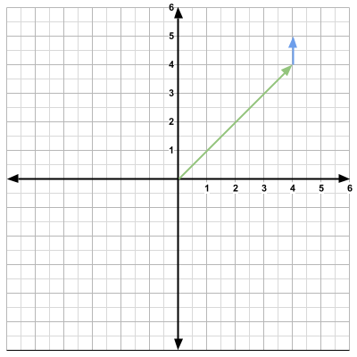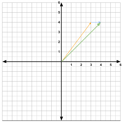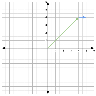 \[ \vec{p} = \begin{bmatrix} 4 \\ 4 \end{bmatrix} \]We take the direction vector and again, append it to the head of the position vector.