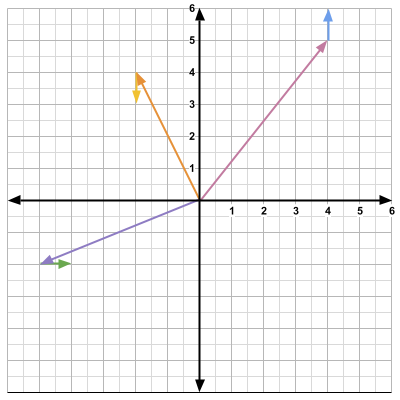 \[\vec{p}= \begin{bmatrix} 4 \\ 5 \end{bmatrix} \]Now that we have done this in 2-dimensions, I bet you can imagine how easy it is to transfer this to 3-dimensional space. Additionally, multiple vectors can be displayed at once.